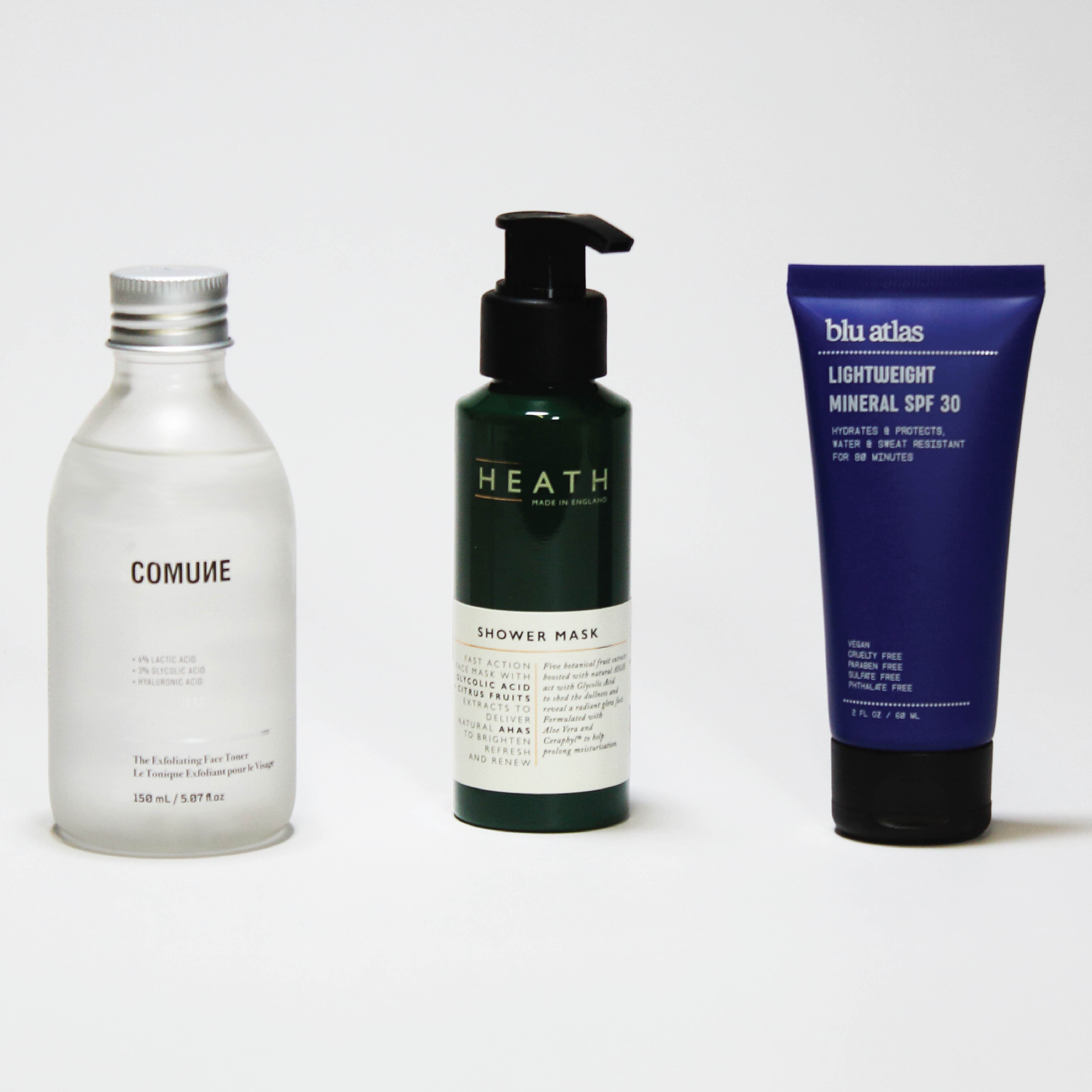 Heath Shower Mask — a twice-weekly AHA + glycolic treatment that deep-cleans and smooths skin texture while you shower.